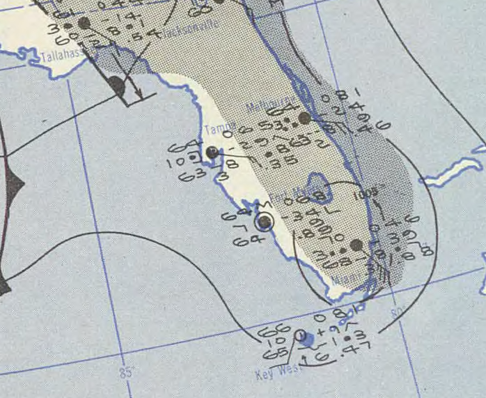 [[File:One 1952-02-04 weather map.png|thumb|right|Pressure map showing the Groundhog Day tropical storm as an extratropical storm off the Eastern Seaboard.]]
