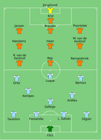 The knockout stage of 1978 FIFA World Cup was a single-elimination tournament involving the four teams that qualified from the second group stage of the tournament. There were two matches: a third place play-off contested by the group runners-up, and the final to decide the champions, contested by the group winners. The knockout stage began with the third place play-off on 24 June and ended with the final on 25 June 1978, both at the Estadio Monumental in Buenos Aires. Argentina won the tournament with a 3–1 victory over the Netherlands.[1]