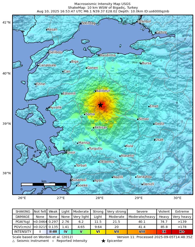 Twenty-six people were injured,<ref>{{Cite news |date=October 28, 2025 |title=Son Dakika… Balıkesir depreminde yaralanan 26 yurttaş taburcu edildi |url=https://www.cumhuriyet.com.tr/turkiye/son-dakika-balikesir-depreminde-yaralanan-26-yurttas-taburcu-edildi-2447582 |access-date=October 28, 2025 |publisher=[[Cumhuriyet]] |language=tr}}</ref> five abandoned buildings and a shop collapsed, many buildings and homes were damaged and a collapsing wall damaged a vehicle in [[Sındırgı]].<ref>{{Cite news |date=October 27, 2025 |title=6.1-magnitude earthquake strikes western Turkey, authorities say |url=https://english.alarabiya.net/News/middle-east/2025/10/28/61magnitude-earthquake-strikes-western-turkey-authorities-say |access-date=October 27, 2025 |publisher=[[Al Arabiya English]]}}</ref><ref>{{cite news|title=Merkez üssü Sındırgı olan deprem… İlçeye bağlı Alacaatlı Köyü’nde metruk bir ev yıkıldı|url=https://ankahaber.net/haber/detay/merkez_ussu_sindirgi_olan_deprem_ilceye_bagli_alacaatli_koyunde_metruk_bir_ev_yikildi_269789|agency=Anka Haber|language=tr|date=27 October 2025|access-date=27 October 2025}}</ref><ref>{{Cite news |date=October 27, 2025 |title=Son dakika..Balıkesir’de 6,1 büyüklüğünde deprem! İstanbul, İzmir, Bursa sallandı |trans-title=Breaking news… 6.1 magnitude earthquake in Balıkesir! Istanbul, Izmir, Bursa shaken |url=https://www.ekonomidunya.com/son-dakika-balikesir-de-6-1-buyuklugunde-deprem-istanbul-izmir-bursa-sallandi/91808/ |access-date=October 27, 2025 |publisher=Ekonomi Dünya |language=Turkish}}</ref><ref>{{Cite news |date=October 28, 2025 |title=Sındırgı depreminde çöken binalar sabahın ilk ışıklarıyla böyle görüntülendi |url=https://www.yenisafak.com/foto-galeri/gundem/sindirgi-depreminde-coken-binalar-sabahin-ilk-isiklariyla-boyle-goruntulendi-4762892/8 |access-date=October 28, 2025 |publisher=Yeni Safak|language=Turkish}}</ref> Fourty people were injured and 26 homes were damaged in [[Manisa Province]].<ref>{{Cite news |date=October 28, 2025 |title=Manisa’da deprem nedeniyle 5 ilçede eğitime 1 gün ara verildi |url=https://www.ensonhaber.com/gundem/manisada-deprem-nedeniyle-5-ilcede-egitime-1-gun-ara-verildi |access-date=October 28, 2025 |publisher=Ensonhaber|language=Turkish}}</ref> A house sustained cracks in walls and a collapsed ceiling in [[Gördes]].<ref>{{Cite news |date=October 27, 2025 |title=Sındırgı merkezli deprem Gördes’te hasara yol açtı: Bir evin tavanı çöktü |trans-title=The earthquake, centered in Sındırgı, caused damage in Gördes: The ceiling of a house collapsed. |url=https://oxu.az/tr/gundem/sindirgi-merkezli-deprem-gordes-te-hasara-yol-acti-bir-evin-tavani-coktu |access-date=October 27, 2025 |publisher=Oxu.az|language=tr}}</ref> Several aftershocks, the largest of which measured {{M|w}} 4.9, caused a building heavily damaged by the August 11 quake to collapse partially.<ref>{{Cite news |date=October 28, 2025 |title=Bursa’da hissedildi! Artçı sarsıntılar devam ediyor… |trans-title=Felt in Bursa! Aftershocks continue… |url=https://www.bursadabugun.com/haber/bursa-da-hissedildi-artci-sarsintilar-devam-ediyor-1856722.html |access-date=October 27, 2025 |publisher=Bursa’da Bugün|language=tr}}</ref> Schools were closed for one day.<ref>{{Cite news |date=October 27, 2025 |title=Balıkesir’de okullara ‘deprem’ arası! |trans-title=Schools in Balıkesir on ‘earthquake’ break! |url=https://www.nobetcigazete.com/balikesirde-okullara-deprem-arasi |access-date=October 27, 2025 |publisher=Nöbetçi Gazete |language=Turkish}}</ref> Public buildings were opened to temporarily shelter victims.<ref>{{Cite news |date=October 28, 2025 |title=Balıkesir Valiliği: Depremzedeler için tüm kamu binaları barınmaya açıldı |trans-title=Balıkesir Governorship: All public buildings have been opened to shelter earthquake victims. |url=https://www.24saatgazetesi.com/balikesir-valiligi-depremzedeler-icin-tum-kamu-binalari-barinmaya-acildi |access-date=October 27, 2025 |publisher=24 Saat Gazetesi |language=Turkish}}</ref>