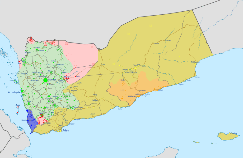 Yemen has been embroiled in a multi-sided civil war since 2014. In fighting the Houthis—who control most of northern Yemen, including the capital, Sanaa—the internationally-recognized government, along with the Saudi-led coalition, partnered with the secessionist Southern Movement, which, since 2017 has been dominated by the Southern Transitional Council (STC). Although officially a component of the government, the STC, which receives extensive support and funding from the United Arab Emirates, independently controls and administers most of southern Yemen and continues to voice its intentions to secede and establish a proposed federal “State of South Arabia”.[14][15]