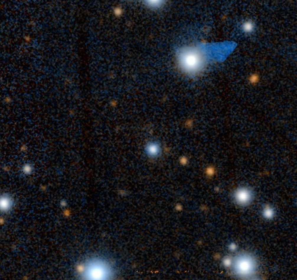 In March 2019, the object was thought to have a [[blazar]] core in its center. However when observed, its jet is shown as straight on a [[trajectory]] path with an [[Orbital inclination|inclination angle]] at 50°. Although [[Very-long-baseline interferometry|Very Long Baseline Interferometry]] (VLBI) observations found the core as compact, it is found to be modelled by multiple jet components instead of a blazar jet, ruling out the possibly of it being classified as a blazar.<ref>{{Cite journal |last=Perger |first=Krisztina |last2=Frey |first2=Sándor |last3=Gabányi |first3=Krisztina É |date=2019