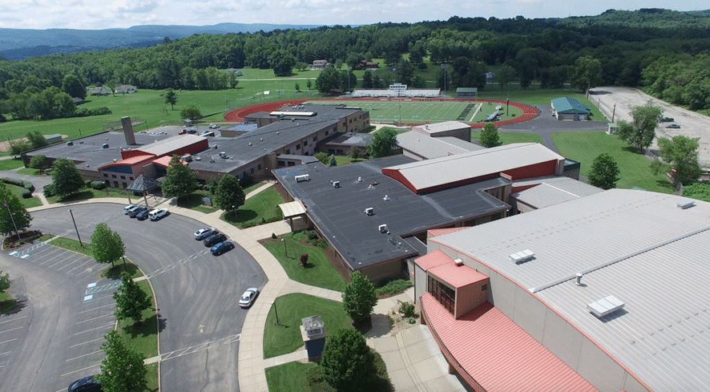 Albert Gallatin High School was created in 1961,[3] consolidating the Masontown and Point Marion high schools at the present-day AG Middle School South campus, near Point Marion. It was not until 1986 that the present building (the former Fairchance-Georges High School) was used as the sole High School for the district, merging all three (at that time) district’s High Schools and creating two Middle Schools. The name was briefly changed to Tri-Valley High School, representing the changes. Finally, in 1993, the school board renamed the school to its present name, to reflect the founding father of the area, Albert Gallatin. Within 1993 and now, the school had a complete renovation and addition process, as well as technology improvements, and a new Athletic Complex,[4] including a new fieldhouse.
