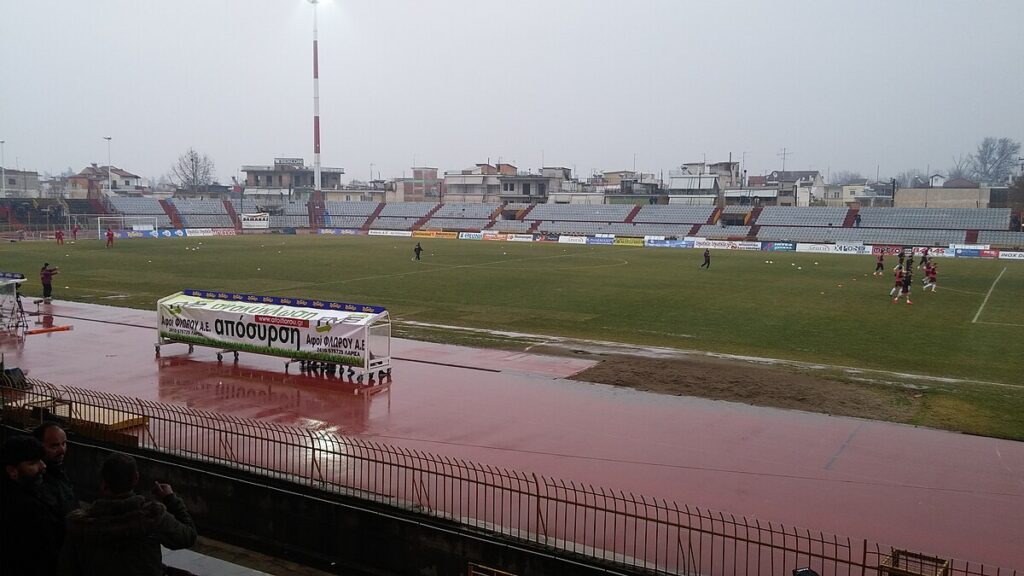 Alcazar Stadium is a multi-purpose stadium in Larissa, Greece part of the National Sports Complex of Larissa (Εθνικό Αθλητικό Κέντρο Λάρισας-Ε.Α.Κ.Λ.). It got its nickname because it is located in the Alcazar park, in Larisa, which was named after the Arabic name for the park which means “The Castle”. The stadium was the homeground of the football team AEL from 1964 to 2010, from 2013 to 2015 and from July 2020 until July 2023. It holds 13,108 seats and was built in 1965.