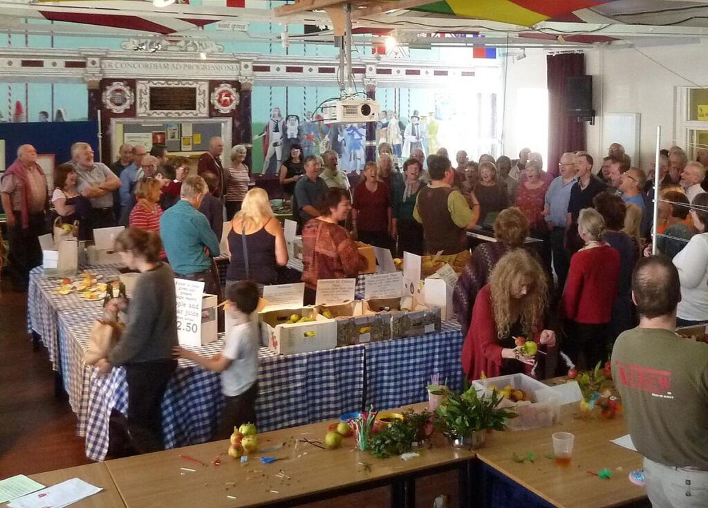 Chepstow Apple Day 2014, featuring obscure apple varieties for sale, apple carving, apple peeling contests and a singing club