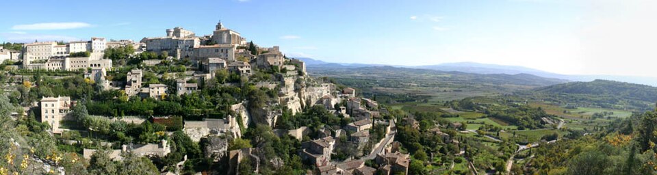 The village of Roussillon, Vaucluse, in the Luberon area, has vestiges of a 10th-century château and an 11th-century church. It is famous for its pinkish and yellow stone; in the 18th century, mines around the town produced pigment to make the color ochre.