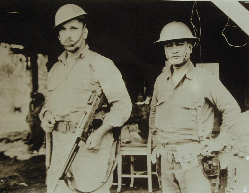 Wermuth received his Army commission in 1936 while he was a junior at Northwestern University.[7] He served in the infantry reserves as a second lieutenant in the Civilian Conservation Corps and was stationed near Watersmeet, Michigan. It was during this time that he learned wilderness survival skills.[8] He entered active duty January 1941 at Fort Brady, Sault Ste. Marie, Michigan, where he remained until April 1941. He was promoted to Captain December 19, 1941, after the invasion of the Philippines and was one of a handful of Americans in the primarily Filipino 57th Infantry Regiment of the Philippine Scouts.[7] On January 5, 1942, Wermuth organized a group of 185 Filipinos into a group that became known as “suicide snipers” to counter enemy infiltration behind American lines and as a counter-sniper force. Over the next three weeks he and his force claimed over 500 enemy killed while losing 45 of its own.[9] He was shot in the leg in January while on a successful mission to destroy a bridge and burn an enemy encampment.[10] On February 3, he was shot in the left breast and was carried back to receive treatment. On February 15, he left the medical facility without permission and rejoined his battalion. In early April he fell down a ravine and was seriously injured on a large boulder. He awakened in Field Hospital Number 2 as it was being overrun by Japanese forces.[11]