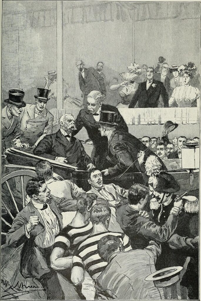 The second attempt for the kings life occurred on 22 April 1897, in Rome. Umberto was riding in his carriage at the Capannelle Racecourse[5] when the anarchist Pietro Acciarito rushed towards his carriage armed with a knife.[6] The king, having promptly noticed the weapon in his hand, was able to easily dodge the anarchist’s attempt to strike him and remained unharmed. Having just managed to scratch the royal carriage, Acciarito then calmly walked away and, in the confusion that followed his gesture, was stopped only after he had walked about 50 metres from the place of act. Acciarito was then arrested and sentenced to life imprisonment. Like Passannante, his sentence was very harsh and had serious consequences on his mental health.[6]