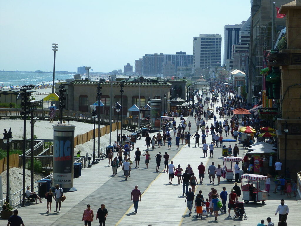 The ”’Atlantic City Boardwalk”’ is an oceanfront [[Boardwalk (entertainment district)|boardwalk]] in [[Atlantic City, New Jersey]]. Opened in 1870, it is the oldest, longest, and busiest boardwalk in the world.<ref name=”June26-1870″>[http://memory.loc.gov/ammem/today/jun26.html Today in History: June 26], [[Library of Congress]]. Accessed June 23, 2016. “On June 26, 1870, the first section of the Atlantic City Boardwalk opened along the New Jersey beach.”</ref>