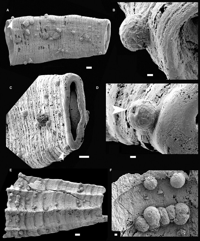 - ^ a b c d e f g Willman, S.; Peel, J. S. (2026). “Vesicular microfossils on middle Cambrian shells: insights into early substrate colonization in North Greenland (Laurentia)”. Palaeontology. 69 (1) e70045. doi:10.1111/pala.70045.