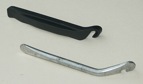 - Tire levers are used for removing the tires from the rim, often for changing the inner tube. Plastic levers are more prone to breakage; metal ones damage tubes, tires, or rims more easily.[1]