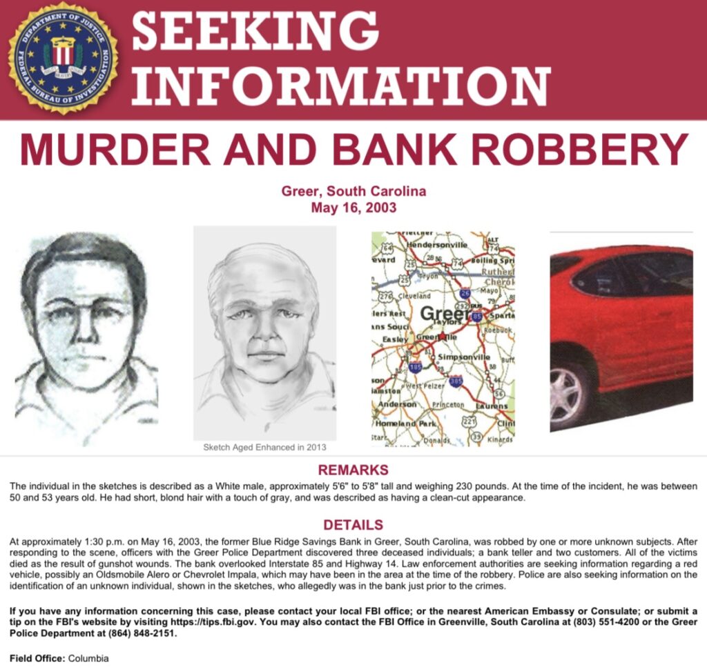 South Carolina bank robbery and triple homicide cold case