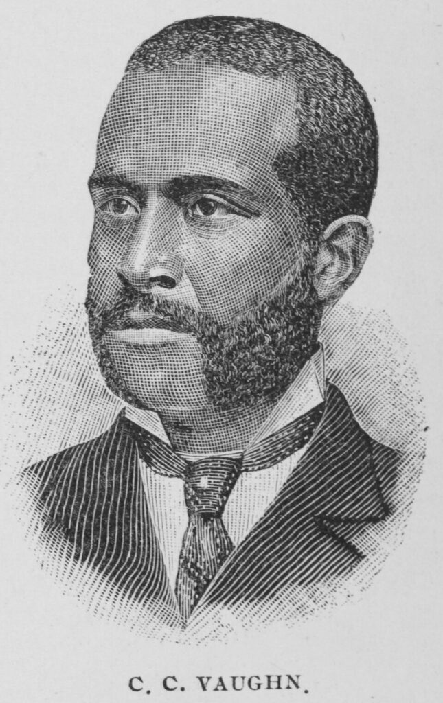 ”’C. C. Vaughn”’ (December 27, 1846 – October 21, 1923) was an educator and Baptist minister in [[Ohio]] and [[Kentucky]]. He served in the [[American Civil War]] and was promoted to orderly sergeant in his heavy artillery regiment. He was also active in the [[Colored Conventions Movement]] and played prominent state and national roles in the [[Grand Army of the Republic]], a veterans group, and the Independent Order of Good Samaritans and Daughters of Samaria, an African-American beneficial and temperance society. He is also known as ”’Charles C. Vaughn”’, and ”’Cornelius C. Vaughn”’.<ref name=”Smith2015″ />