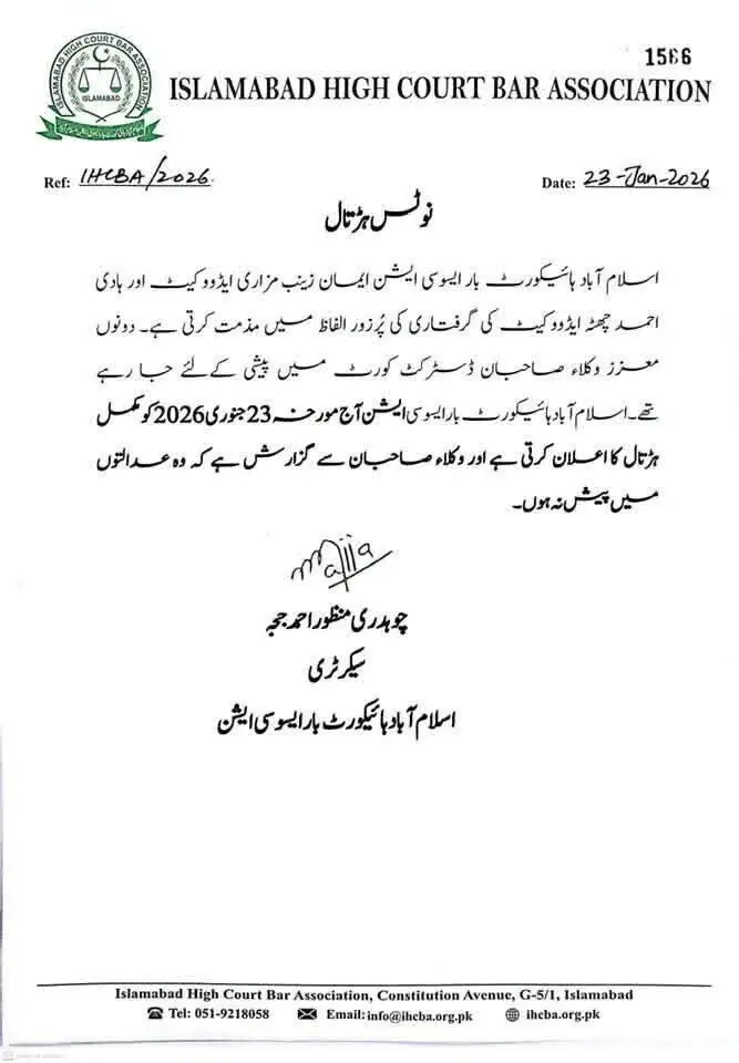 Business, games, Health, Home, pakistan, PoliticsLawyers Imaan Mazari, Hadi Ali Chattha sent to jail on judicial remand following arrest in Islamabad January 23, 2026 ISLAMABAD: Hours after the arrest of activist and lawyer Imaan Zainab Mazari-Hazir and her husband Hadi Ali Chattha on Friday,
