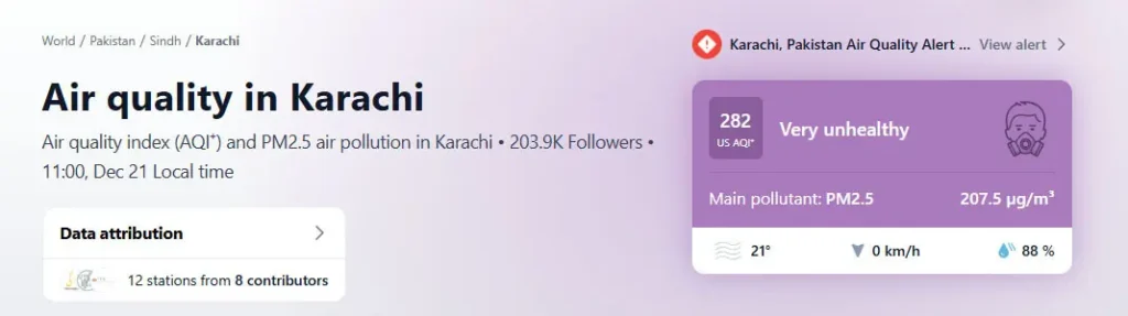 Business, games, Health, Home, pakistan, PoliticsKarachi experiences foggy morning, ‘very unhealthy’ air, flight disruptions December 21, 2025 As fog engulfed several areas of Karachi on Sunday morning and the city experienced “very unhealthy” weather conditions, flight disruptions