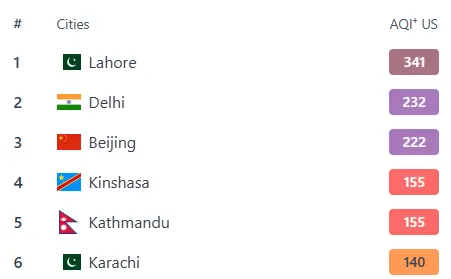 Business, games, Health, Home, pakistan, PoliticsLahore continues to top global charts for poor air quality October 29, 2025 Lahore continues to rank as the most polluted city in the world in terms of its air quality, the global