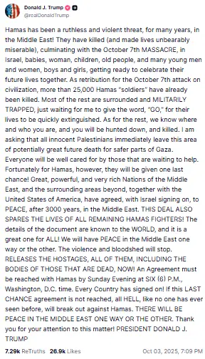 Business, games, Health, Home, pakistan, PoliticsHamas says it agrees to release all Israeli hostages under Trump Gaza plan October 3, 2025 Hamas said early Saturday it had agreed to release all Israeli hostages, alive or dead, under the terms of US
