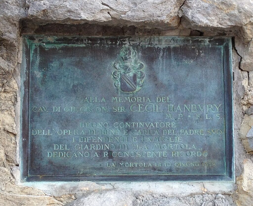 Hanbury was sympathetic to fascism, and in the 1930s he declared his support for Mussolini and the Abyssinian Campaign, for which he was made a Grand Officer of the Italian Order of the Crown.[2] He was knighted on 11 July 1935.[4] After his death a memorial plaque was erected in La Mortola, Ventimiglia, where his father owned an estate.