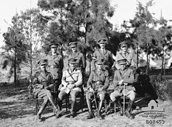 In 1917 Godwin was sent to the Middle East to fight in the Sinai and Palestine campaign, giving command of the British yeomanry 6th Mounted Brigade, with the temporary rank of brigadier-general that September.[4][12] In December he was awarded a Distinguished Service Order (DSO),[13] The commendation for the award read; “For conspicuous gallantry and devotion to duty. He attacked and captured an enemy position in the face of heavy shell, machinegun and rifle fire. Later, he directed the attack by his brigade on a strong enemy position, and by his skill and determination contributed largely to the success of the operation”.[14] He was also awarded a bar to the DSO in January 1918.[15] He was soon after in May 1918, promoted to brevet colonel but still a temporary brigadier-general.[16] In May 1918 he was made a Companion of the Order of St Michael and St George,[17] and returned to the General Staff that October.[18] During the campaign Godwin’s brigade had taken part in the advance on Jerusalem, the capture of Damascus and the battle of Aleppo.[4]