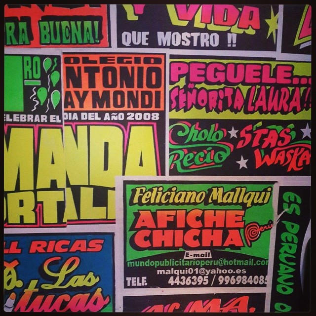 Other characteristics include horror vacui[10] and advertising phrases that blend poetic, idiomatic, and Peruvian Spanish elements.