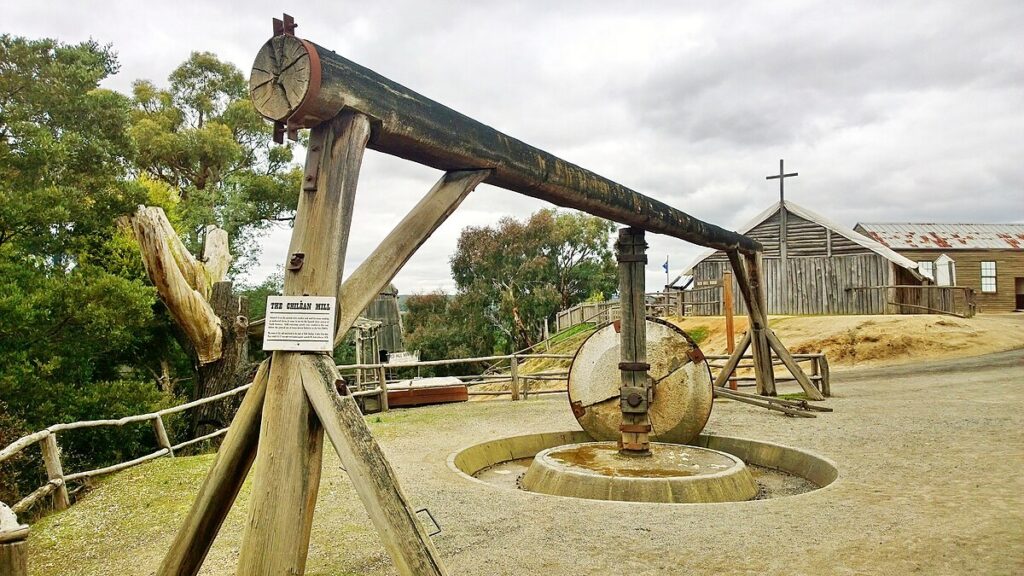 Chilean miners were among the first to respond to the California Gold Rush with the first group arriving by sea in 1848.[1][2] Chileans came mainly from mining districts in northern Chile,[3] and were often skilled miners –in difference to the bulk of the arrivals to California.[5][6] This made Chileans relatively well-prepared for mining influencing practises in California by –among other things– introducing the mining technology to California such as the gold pan, then made of wood, and the trapiche which became known as the Chilean mill.[5][6] Many Euroamericans (Anglos) were indebted to Chileans who tought them the basics of the mining trade.[6] In contrast to Anglos Chileans tended to work less individually and more cooperatively something that facilitated certain types of mining endeavours.[5] Over-all Chileans were more succesfull than Euroamerican miners causing a negative campaign against them in the press.[6] A Chilean practise that was much resented was for Chilean companies to make claims in the names of their “peons” something Euroamericans equated with using slaves to make claims.[6] In some accounts the success of Chileans miners were exagerated to make the claim large ammounts of gold was being shipped out to Chile.[6] Success among Chileans in California was not universal and some returned early on due to financial failure.[5]