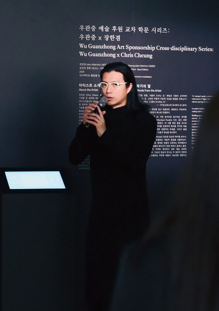 [[File:Chris Cheung presents Sentient Pond at the Seoul Arts Center..jpg|thumb|Chris Cheung presents ”Sentient Pond (2025)” at the Seoul Arts Center.]] |