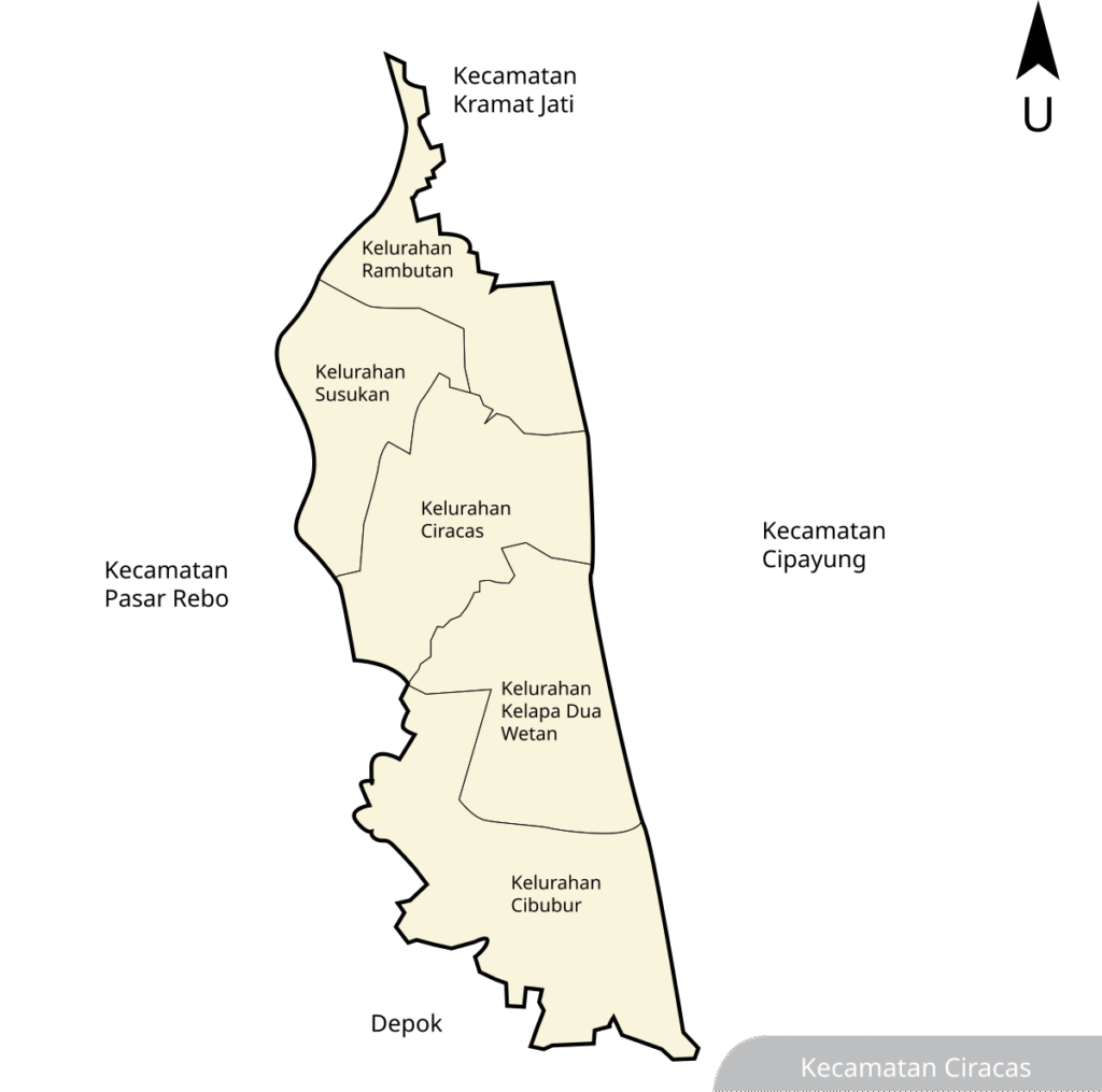 - ^ “Ciracas in Figures”. Distance Between Village Office to District Office and High Level from Sea Level. BPS Kota Administratif Jakarta Timur. 2016. Retrieved August 30, 2019.