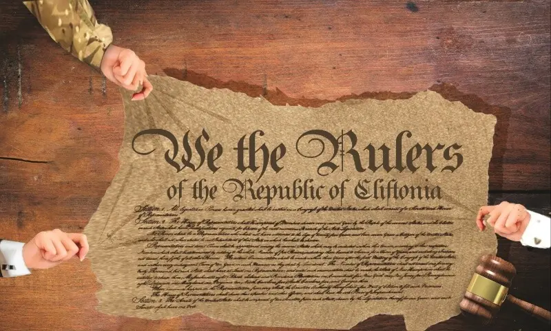 “However, like a well-oiled corporate entity, every country must bear the burden of a constitution, if it is to exist in today’s modern world. This has become necessary due to the world being run mostly by socialist feminist transgenders, placed in positions of power and prestige by the deep state, in order to wreak havoc over the world that has been so painstakingly created by wealthy but powerless, strong but weak, unaccountable but selfless, affluent, heterosexual men, who have been blessed with all the knowledge that is contained in — to quote the late, great Peter Cook — “the universe and all that surrounds it.”