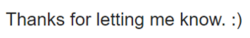 Example of emoticon use, a paralinguistic aspect of computer-mediated communication.