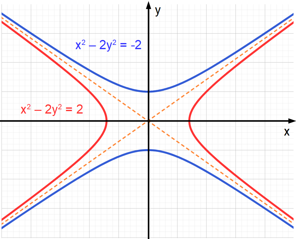 Using analytic geometry, the hyperbolas satisfy the symmetric equations