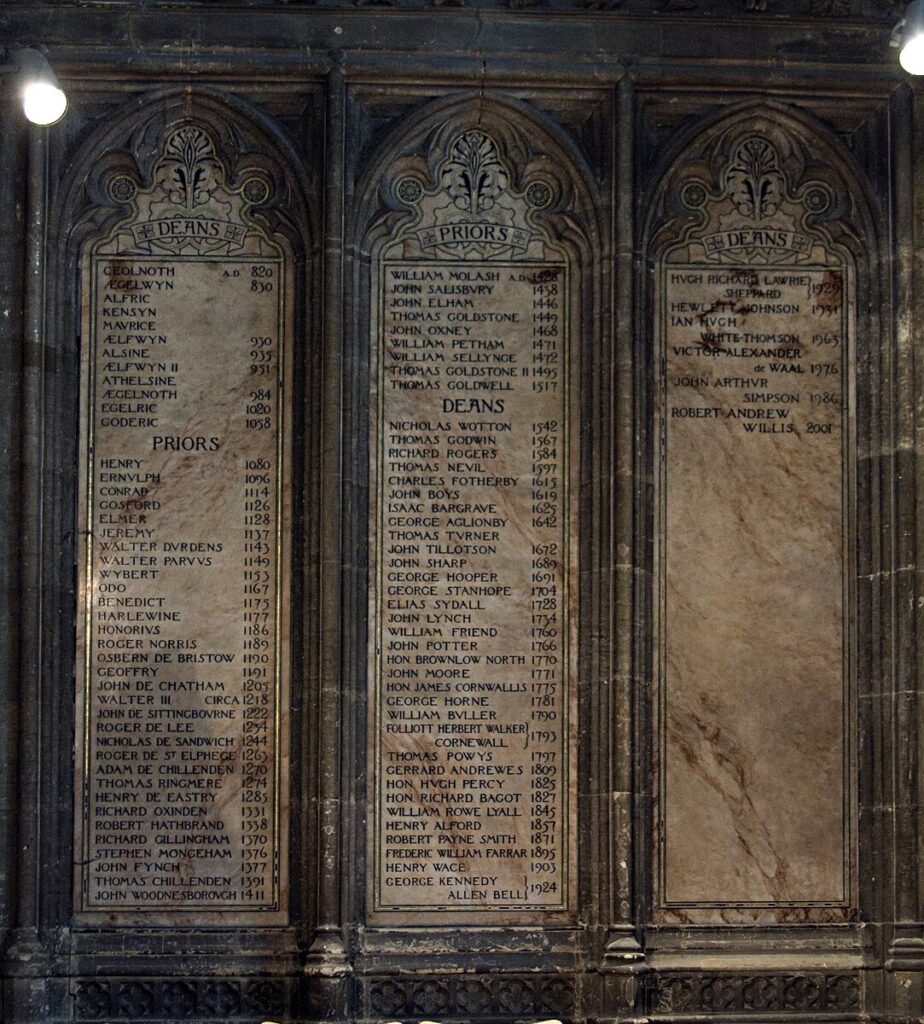 Inscribed panels in Canterbury Cathedral, listing the Deans of Canterbury