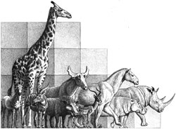 [[File:Ungulates from the Pliocene of eastern Africa.jpg|thumb|left|[[Ungulates]] from the [[Pliocene]] of eastern Africa, including ”D. praecox” (right)]] |