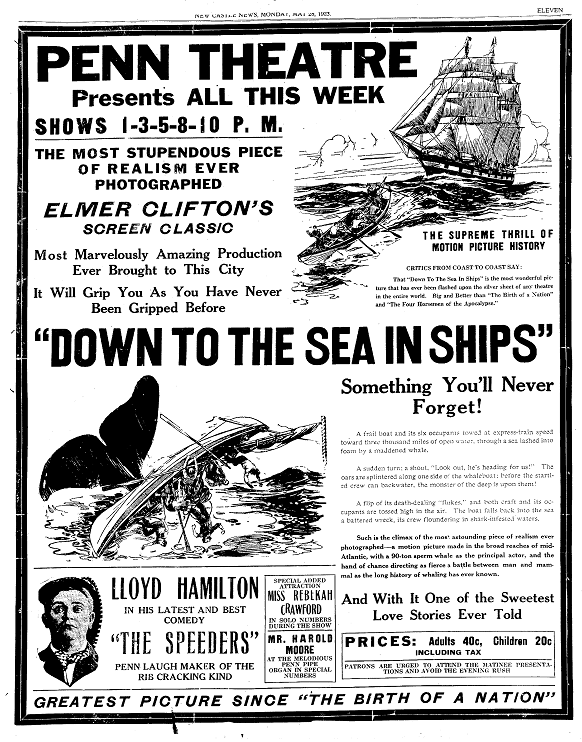 The authenticity of the whaling scenes are noted in the opening screen credits, which praise the bravery of both A.G. Penrod and Paul H. Allen, the cameramen, “who, in small boats, stood by their cameras at the risk of their lives to photograph the fighting whales.”