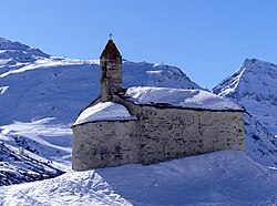 The Saint-Margaret Chapel, in winter, hamlet of L’Ecot, Haute-Maurienne, France