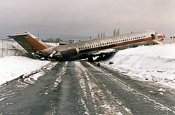 | caption = The aircraft after [[Runway excursion|overrunning the runway]]