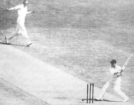 One particularly high-profile example of a duck came in 1948, when Don Bradman was playing his final Test match for Australia, against England at The Oval. In Australia’s first innings, Bradman was bowled for a duck by Eric Hollies, causing his Test average to fall from 101.39 to 99.94; had he scored just four runs, his average would have been 100. As things turned out, Australia won the match by an innings, and so Bradman did not get to bat a second time (had he batted, he would have needed at least 104 runs if dismissed or at least four runs if not out to get his average back to 100).[7]