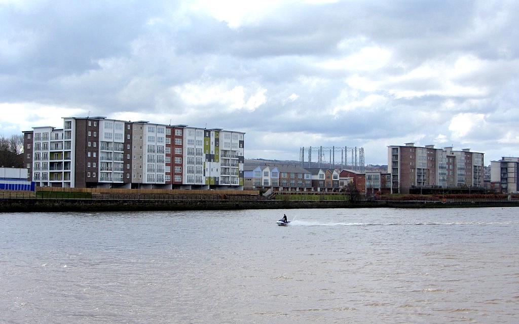 To the west of Dunston is the site of Dunston Power Station, now demolished. The site is now home to Costco, with the MetroCentre (at this time the largest shopping and leisure complex in Europe), occupying the former site of the station’s ash ponds.[4] The Gateshead-based Go-Ahead Group has constructed a new bus depot to replace its Sunderland Road and Winlaton depots on the eastern part of the power station site. Another Dunston landmark was the Derwent Tower (commonly known as “The Rocket”), a tower block that was once the highest building in Gateshead. It was designed by the Owen Luder Partnership and completed in 1973.[5] A well-known structure that had appeared in two films, it was demolished in 2012. It had always proved unpopular with residents, and fallen into a poor condition: Gateshead Council decided that the renovation costs would be prohibitive.[6] The 1960s Tower Court development has now been replaced by new housing and shops. Luder also designed the similarly maligned Trinity Centre Multi-Storey Car Park (known for its appearance in the 1971 gangster thriller Get Carter, and now demolished) in Gateshead town centre.