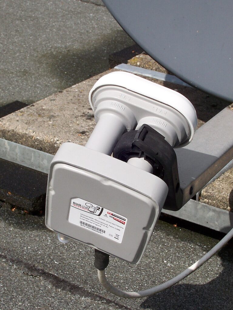It is a monoblock LNB, which comprises two feedhorns with a single body of electronics containing the LNB stages along with switching circuitry to select which received signal is passed to the output(s). The Duo LNB uses linear polarisation.