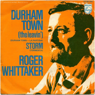“Durham Town (The Leavin’)” is a song, written and sung by Roger Whittaker, released as a single in 1969. It spent 18 weeks on the UK Singles Chart, peaking at No. 12.[1][2] In 1976, the song reached No. 8 on Canada‘s RPM “Pop Music Playlist”,[3] while reaching No. 23 on Billboard‘s Easy Listening chart.[4] The song was also recorded in French translation under the title “Mon pays bleu”.