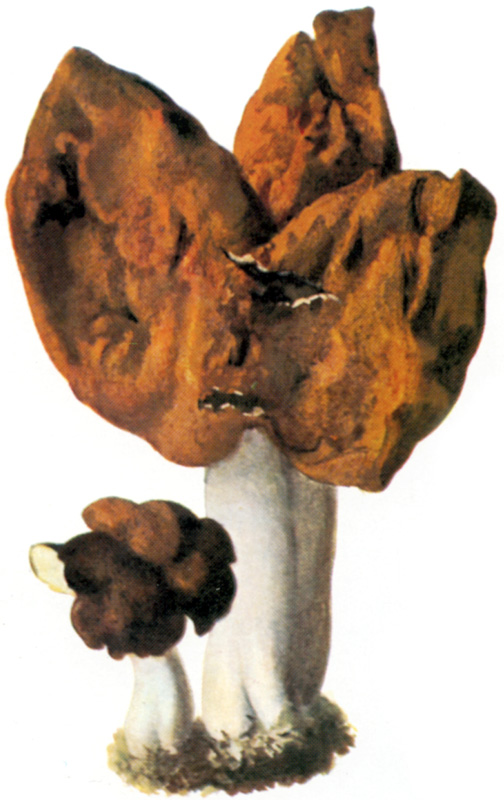 [[File:Bischofsmütze-1.jpg|thumb|right|upright|”Gyromitra infula”, one of several species known as an “elfin saddle”]] |