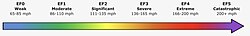 For purposes such as tornado climatology studies, Enhanced Fujita scale ratings may be grouped into classes.[53][54][55] The National Weather Service classifies EF0 and EF1 as weak, EF2 and EF3 as strong, as EF4 and EF5 as violent.[52] The National Weather Service also uses the EF scale to classify tornadoes with a rating of EF2 and greater as significant.[52] The National Weather Service Quad Cities, Iowa/Illinois uses a modified EF scale wording, which gives a new term for each rating on the scale, going from weak to catastrophic.[51]