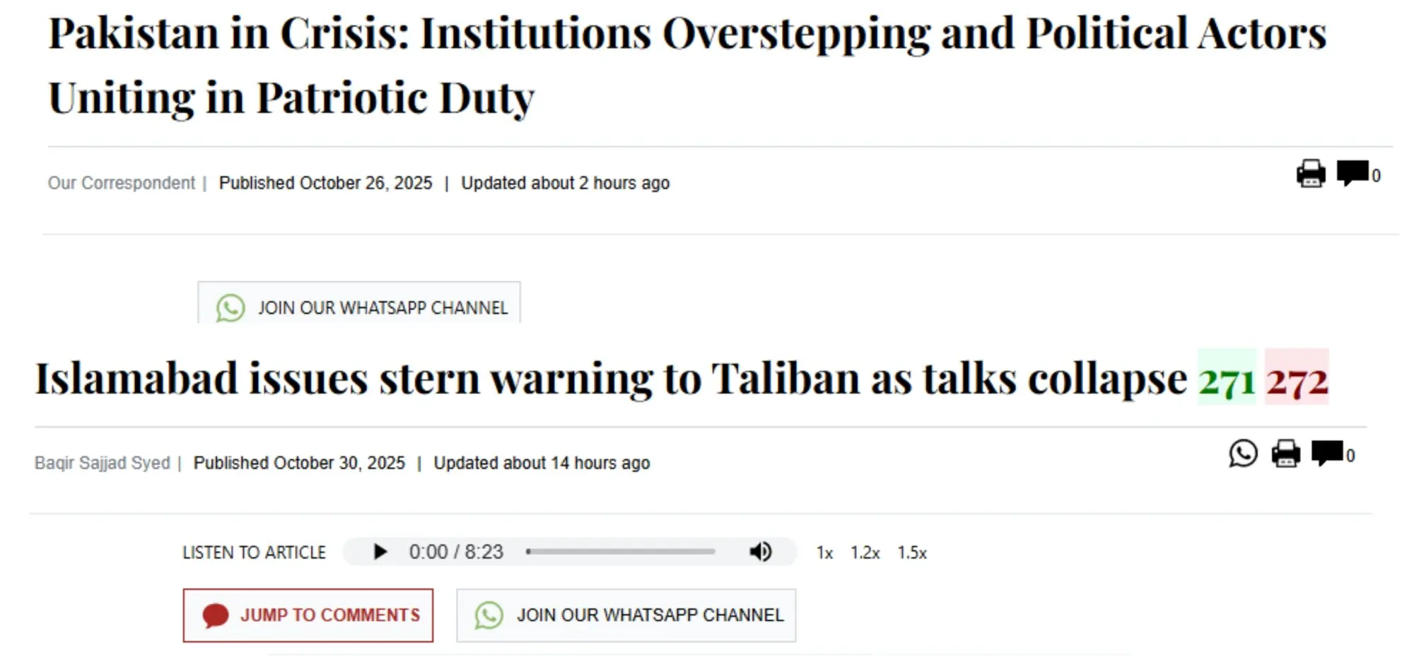 • Button for “JUMP TO COMMENTS” besides the invitation button to join DAWN’s WhatsApp channel