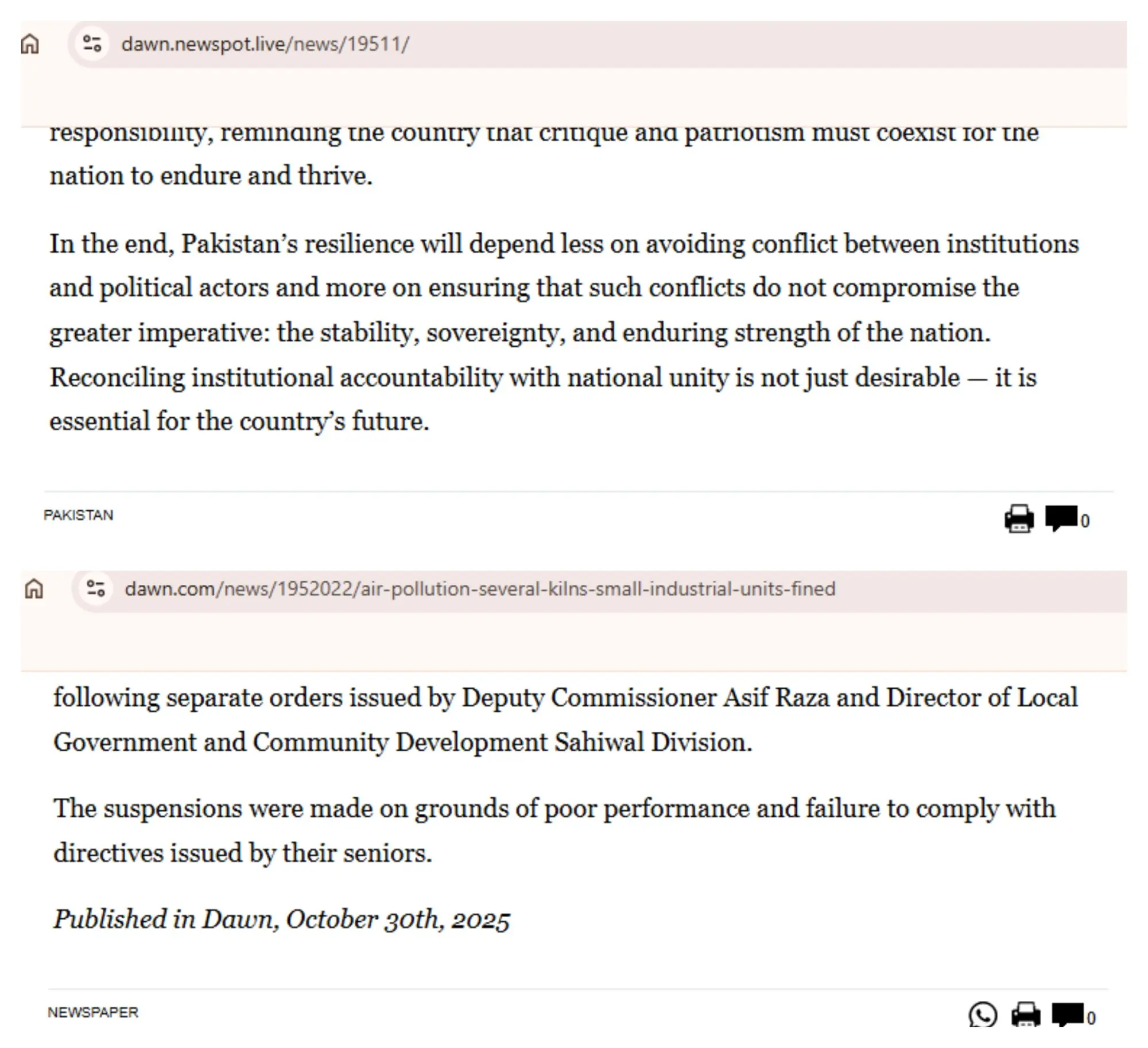 If in doubt, perform a keyword search using the main elements from a headline. If true, the results will either bring up the authentic DAWN article or similar reports from other publications on the same development.