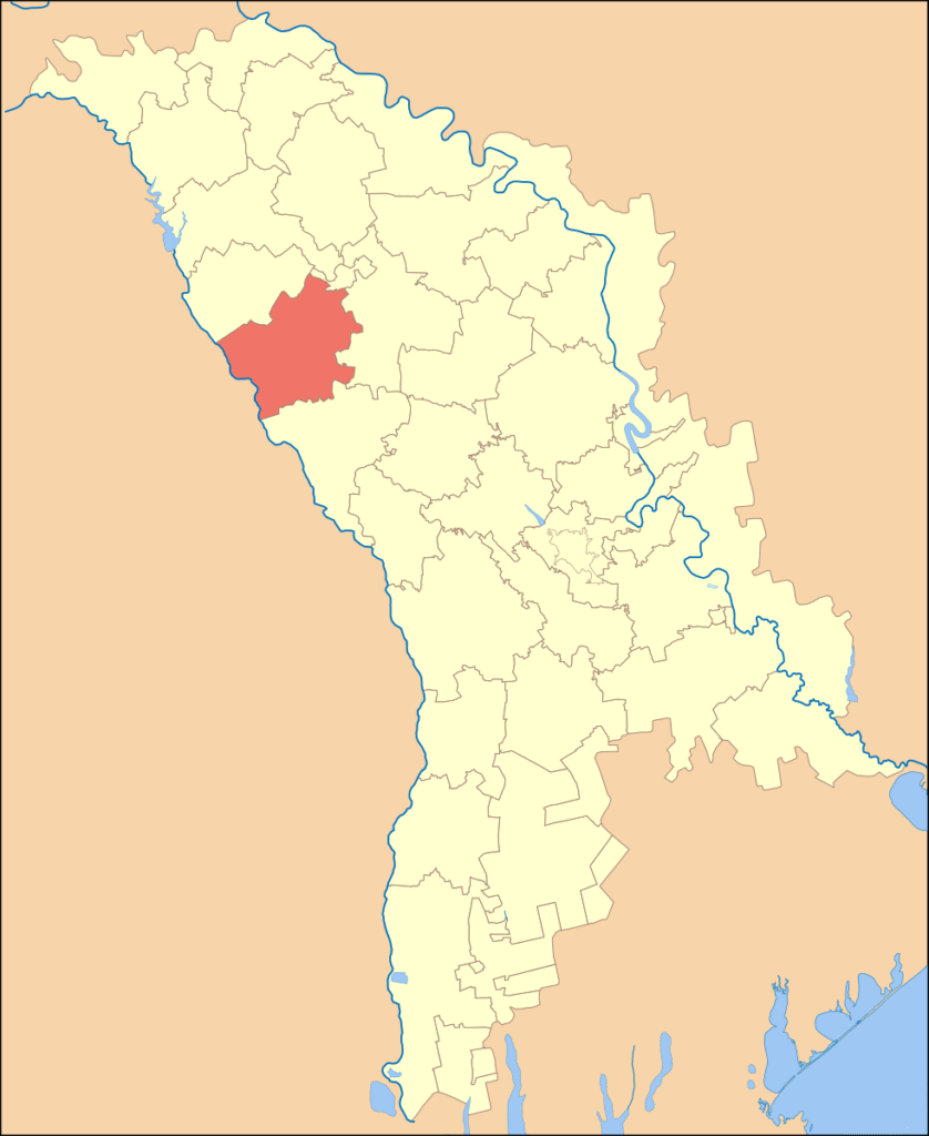 The district lies predominantly within the Prut River basin, with the river forming its western boundary along the border with Romania, while its eastern part falls within the Răut River basin, including its tributaries, the Ciulucul Mare and Ciulucul de Mijloc. Rich in ponds and streams, the area supports diverse fish species such as carp, crucian carp, and perch.
