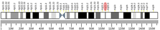 FAM199X, also known as CXorf39, is located on the long arm of the X chromosome at Xq22.2 on the plus strand between bases 104,166,453 and 104,195,902 and encodes six exons.[1][3] The gene is located next to an enhancer called LOC130068517, also known as ATAC-STARR-Seq Lymphoblastoid Active Region 29826.[4]