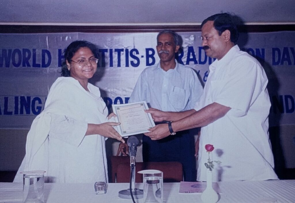 In 2005 she was awarded the Kalinga Gastroenterology Foundation Samana for spreading public awareness and striving to eradicate the menace of Hepatitis B among children.[25]
