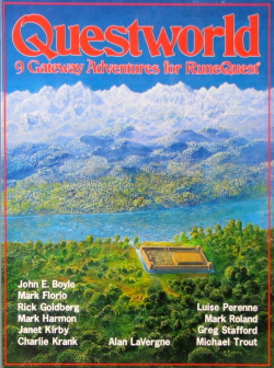 Description The cover art on the box of Questworld, a fantasy role-playing world published by Chaosium in 1982.