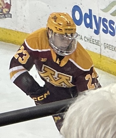Jimmy Clark (Minnesota Golden Gophers men’s ice hockey forward) during October 30, 2025 road game at Kohl Center in Madison against Wisconsin Badgers |
