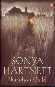 This is a cover image of the book “Thursday’s Child”. This book was written by Sonya Hartnett and first published by Walker Books (Australia) in 2002. This constitutes fair-use as there are no other free images available, as it is a book cover. This image is being used in the article “Thursday’s Child (novel)” to illustrate the book that is being written about.