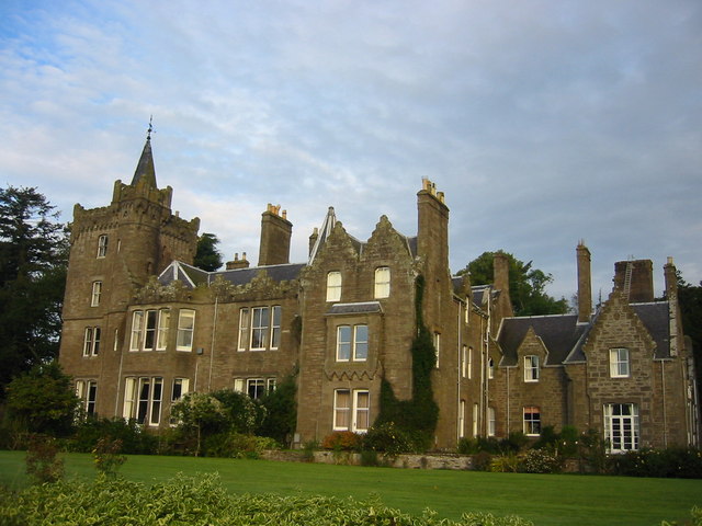 The house is a Scottish baronial style mansion built in 1865 for the then laird, David Greenhill Gardyne, by Messrs Carver and Symon of Arbroath.[3]