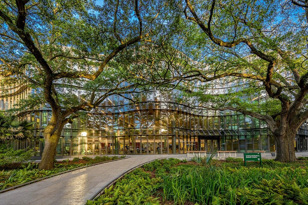 The Freeman School’s main building, the Goldring/Woldenberg Business Complex, sits in the center of Tulane’s Uptown New Orleans campus, which is located on St. Charles Avenue, across from Audubon Park. The GWBC houses the undergraduate and graduate business programs and features advanced hardware and software equipped with industry-leading simulation, and financial applications.[4]